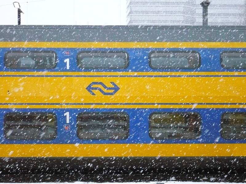 Winterbild aus Holland. Ein Regiorunner Triebwagen Utrecht, Niederlande am 01-02-2010.