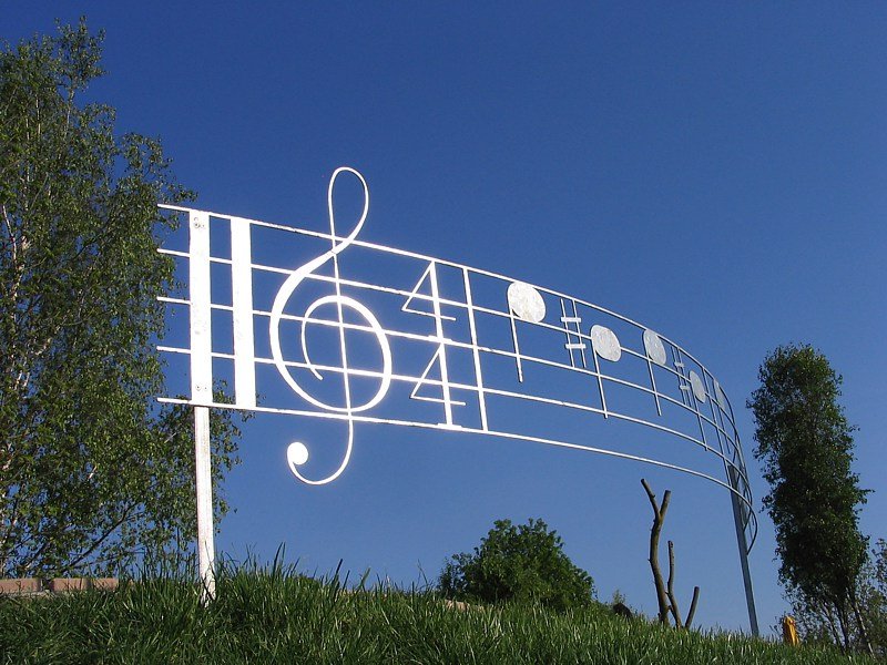 Klänge: Noten der Klangtreppe im Seepark-Golf im Seepark Linzgau, Pfullendorf. 14. Mai 2008